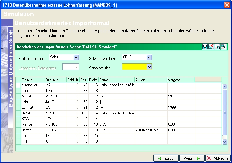In BauSU und Molteo muss eine eindeutige Identifikationsnummer jeweils für Projekte, Personal, Geräte und Material hinterlegt sein.